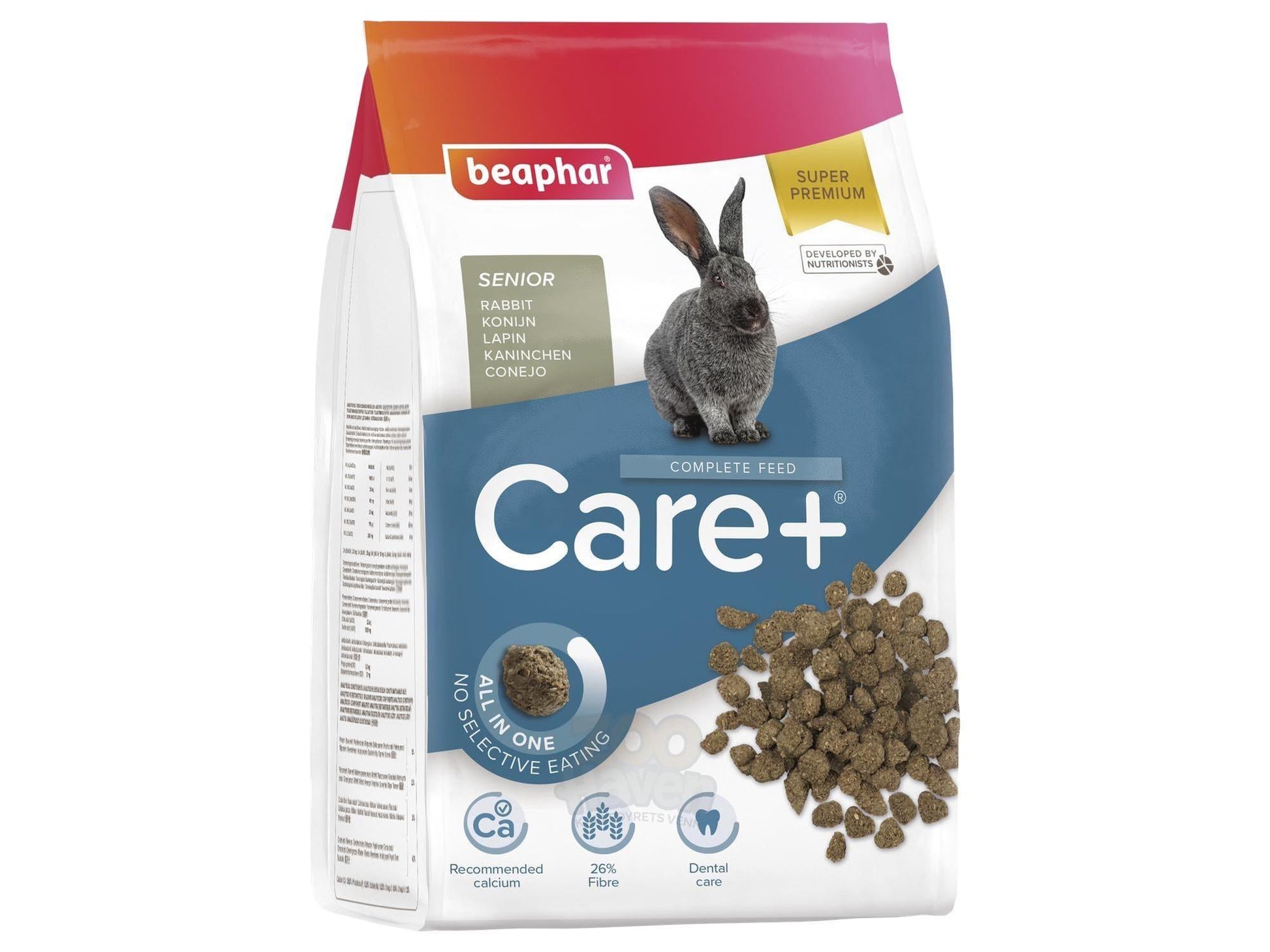 Beaphar Care+ Senior Kanin er et komplett kvalitetsfôr spesielt utviklet for eldre kaniner fra ca. 7 år. Fôret er laget i samarbeid med veterinærer og ernæringseksperter for å møte de ernæringsmessige behovene til aldrende kaniner.
