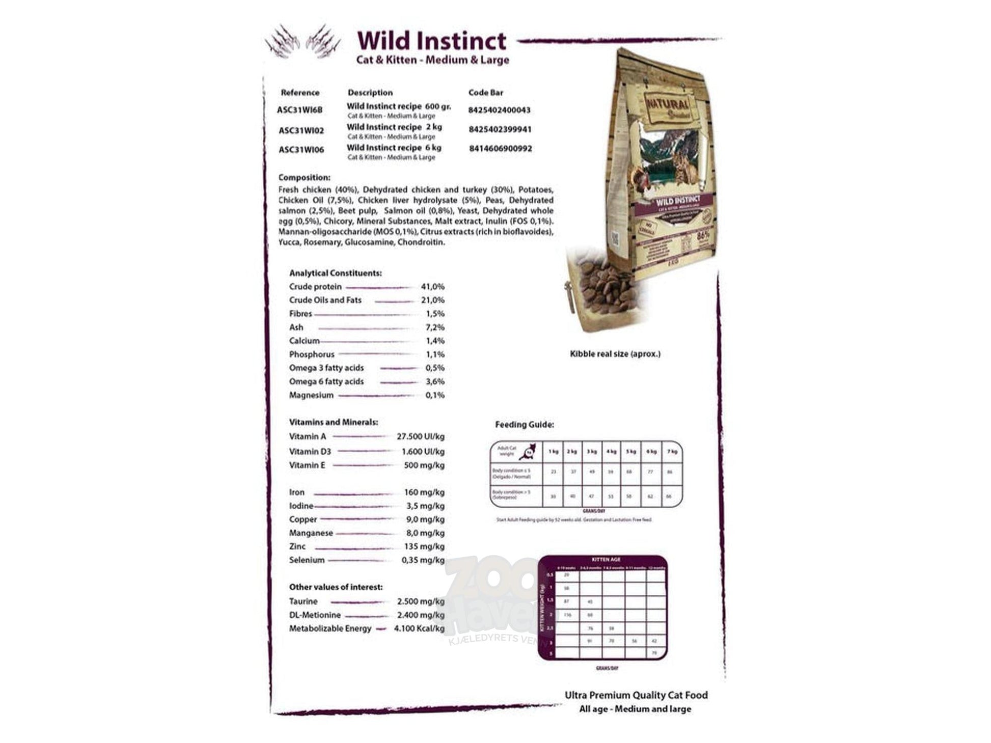 Natural Greatness Wild Instinct Large Breed til katt er et komplett tørrfôr spesielt utviklet for store katter og katter med kraftig kroppsbygning. Oppskriften er inspirert av kattens naturlige kosthold og har et høyt innhold av animalsk protein som støtter sterk muskulatur, sunn vekt og god metthetsfølelse.