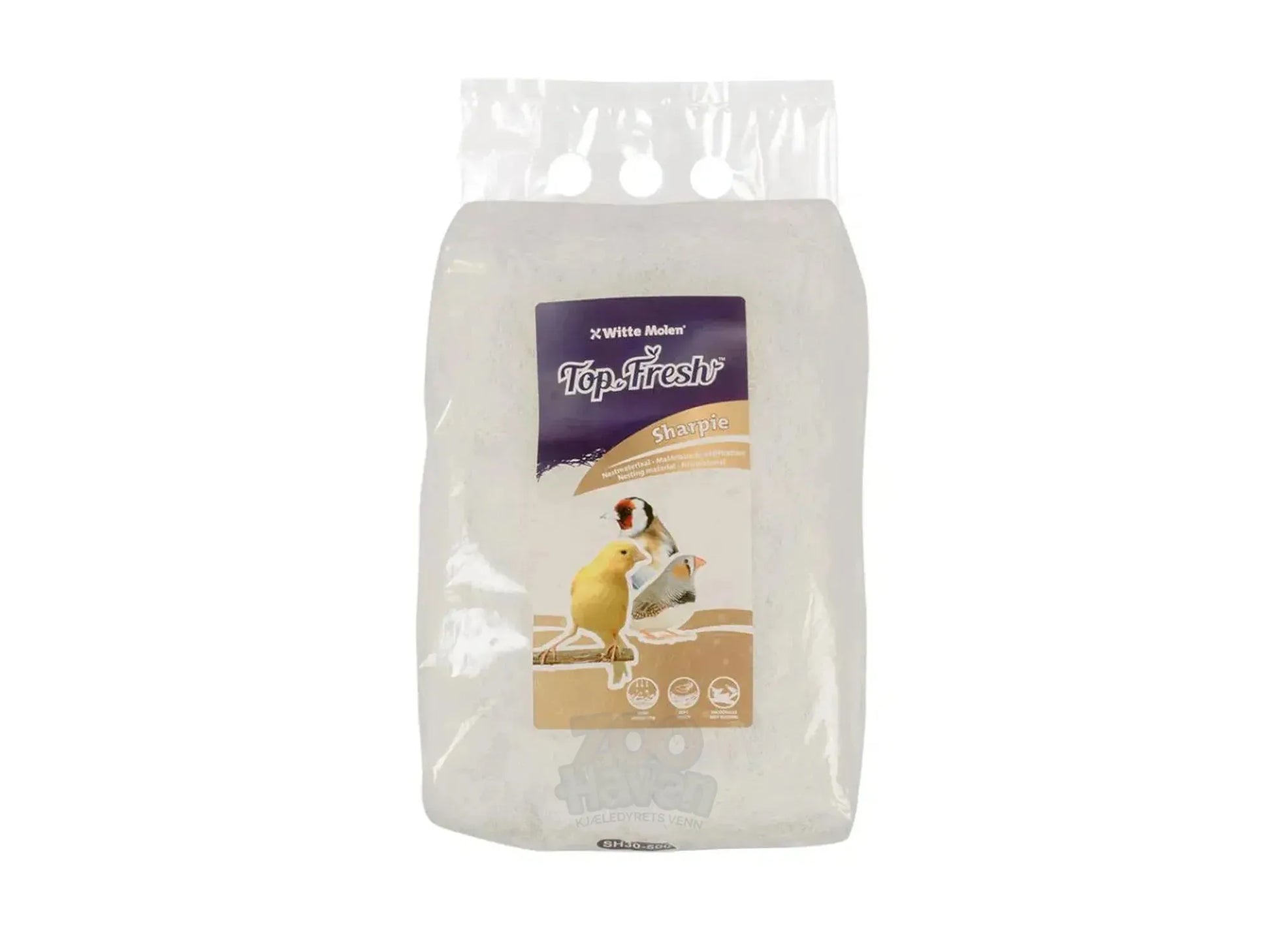 Witte Molen Top Fresh Sharpie Hvit er et mykt og hygienisk reirmateriale utviklet for burfugler. Materialet egner seg godt til bygging av rede og gir fuglene et komfortabelt og trygt underlag i hekkeperioden.