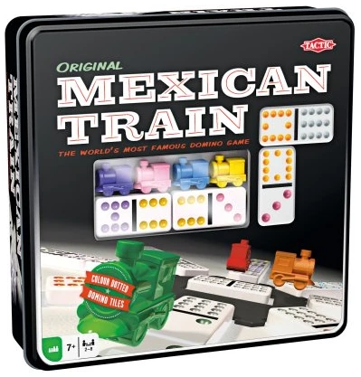 Bygg ut ditt eget dominotog eller legg brikker til Mexican Train. Hvis du er første spiller som kvitter deg med alle dominoene, vinner du spillet!